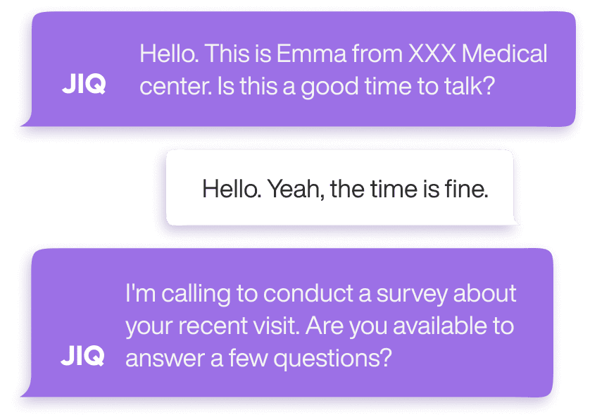 JIQ AI Agent utilizes speech recognition, speech synthesis, and Natural Language Understanding technology allowing your customers to provide feedback in a conversational manner.Our platform provides real-time analytics, allowing you to quickly dentify areas for improvement and make data-driven decisions.